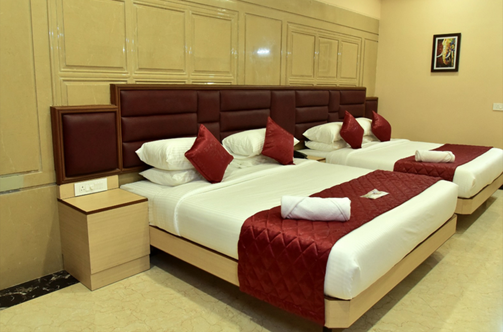 Ulimately designed for the Wedding Group For Big Family,Our King Family Suite Comprises of Style and spaciousness With luxury latex repose mattress. It is enriched with the 3 Bed Rooms,Living Room, Kitchen, Micro oven, Refrigerator, Ro Water, Dinning Area, with exquisite furnishing that gives you a sence royal tranquillity .